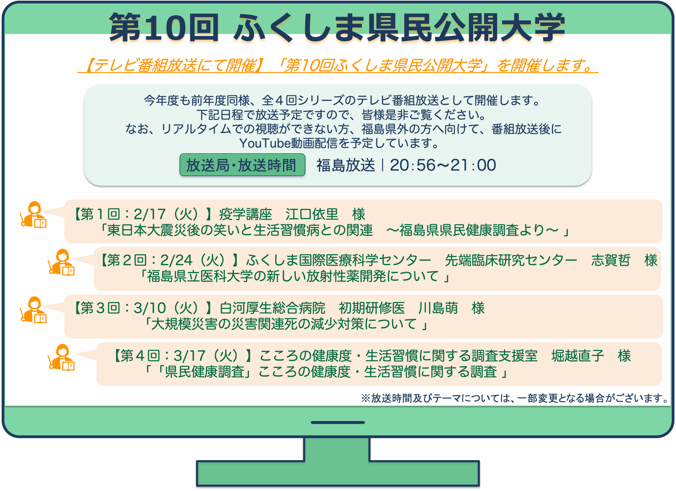 【テレビ番組放送にて開催】「第10回ふくしま県民公開大学」を開催します。